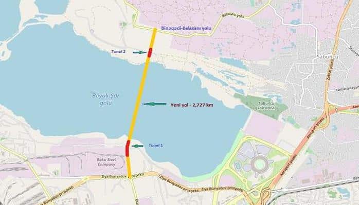 Böyük şor gölü üzərində inşa edilən və gölü iki hissəyə ayıracaq yeni avtomobil yolunda işlər tam başa çatdırıldıqdan sonra sözügedən yol Ziya Bünyadov prospekti ilə Balaxanı, Binəqədi avtomobil yollarını birləşdirəcək. Bu yol istifadəyə verildikdən sonra sürücülər 20 Yanvar dairəsindən istifadə etmədən Xırdalan dairəsi ərazisindən Xırdalan və Masazır qəsəbələrinin ərazisinə, həmçinin Sumqayıt şəhərinə və bu istiqamətdə yerləşən digər qəsəbələrə rahatlıqla çıxış əldə edəcək.
