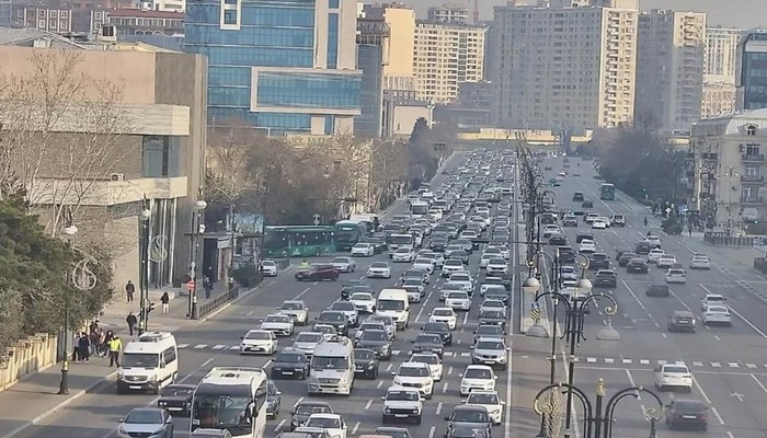 Bakının bir sıra yollarında nəqliyyatın sıxlığı yaranıb