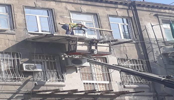 Bakının mərkəzi küçələrində üç mərtəbəli binaların eyvanları sökülür.
