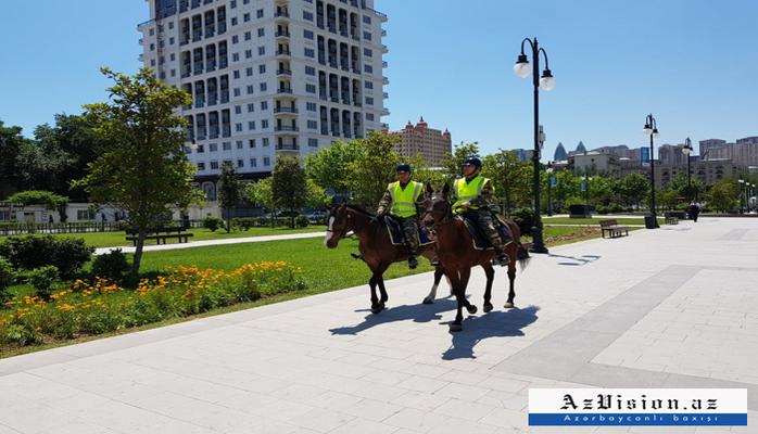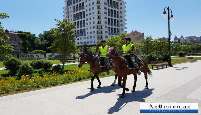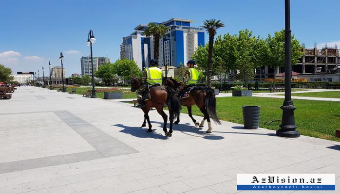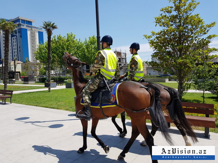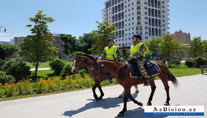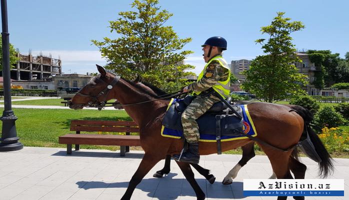 Azvision.az xəbər verir ki, DQ-nın hərbi qulluqçuları Bakının mərkəzində, Qış Parkı ərazisində atla xidmət apararaq təhlükəsizliyi təmin edirlər.