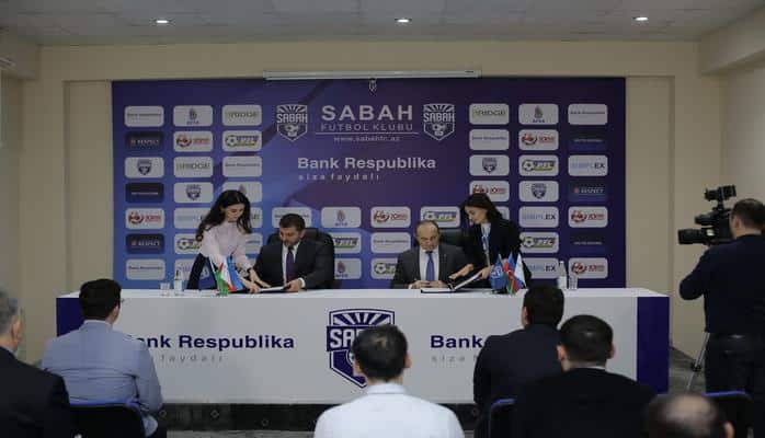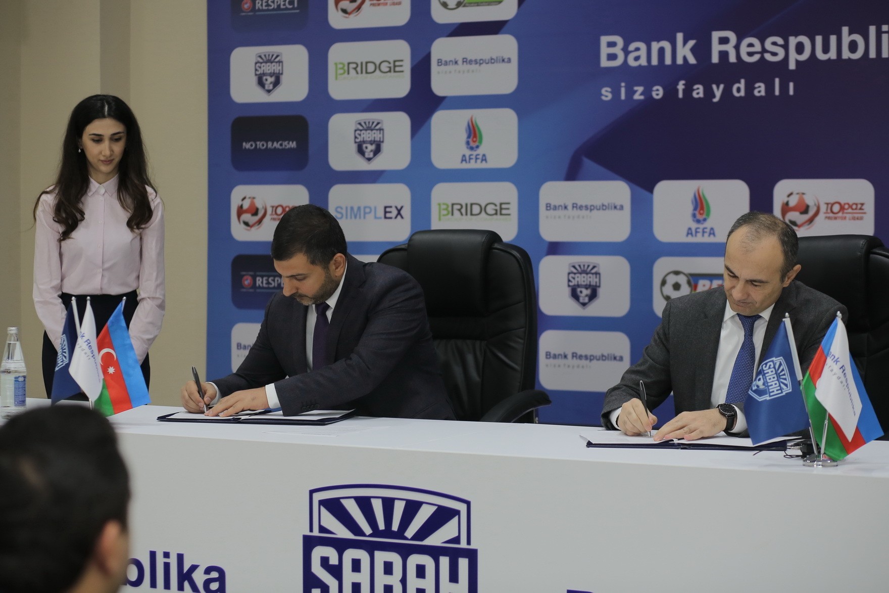 Bu gün ölkənin aparıcı banklarından biri sayılan "Bank Respublika" ilə Azərbaycan futbolunun gənc komandalarından biri olan "Sabah" Futbol Klubu (FK) arasında sponsorluq və əməkdaşlıq haqqında müqavilə imzalanıb.