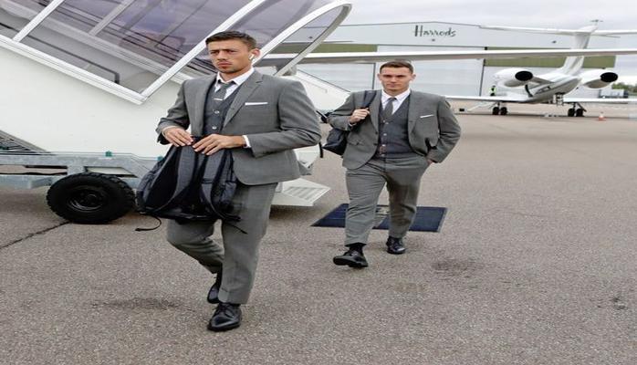 Boz kostyumlarda Londona gələn futbolçular bu libaslarda ilk dəfə görüntülənib.