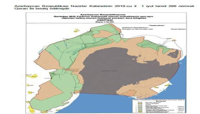 Nazirlər Kabineti “Azərbaycan Respublikası Qızılağac Milli Parkının ərazisinin xüsusi mühafizənin ayrı-ayrı rejimləri tətbiq olunan fəaliyyət zonaları üzrə bölgüsü”nü təsdiq edib.