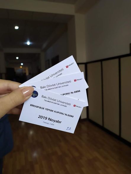 Bakı Dövlət Universitetində təhsil alan aztəminatlı ailələrdən olan və valideynini itirmiş tələbələrə dəstək layihəsi çərçivəsində gündəlik, biri 3 manat dəyərində yemək kuponu pulsuz olaraq veriləcək.