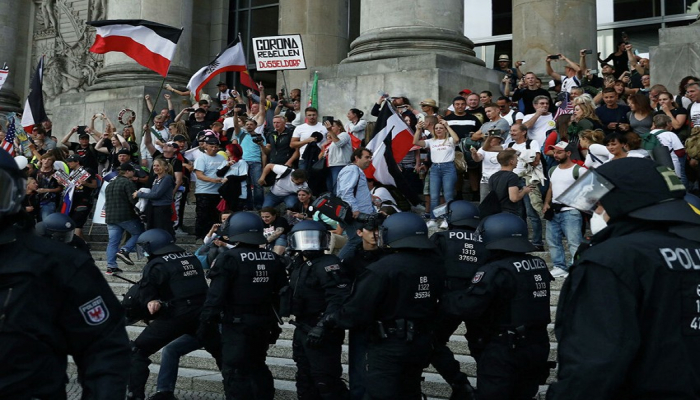 Almaniyanın paytaxtı Berlin şəhərində koronavirusla bağlı tətbiq edilən məhdudiyyətlərə qarşı keçirilən kütləvi etiraz yürüşündə polislə nümayişçilər arasında qarşıdurma yaranıb.