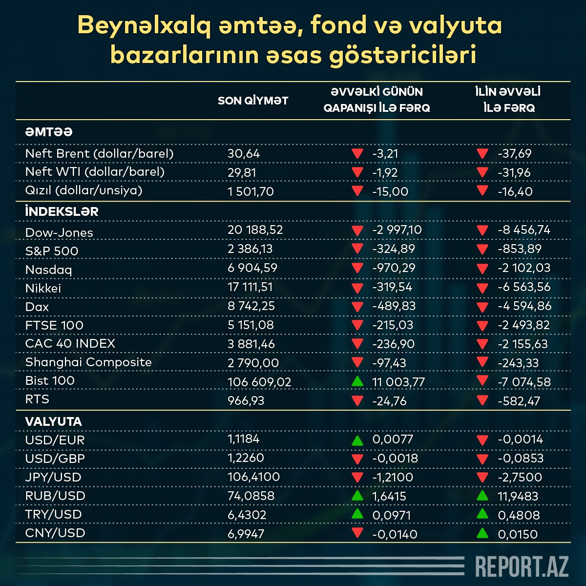 Beynəlxalq əmtəə, fond və valyuta bazarlarının əsas göstəriciləri