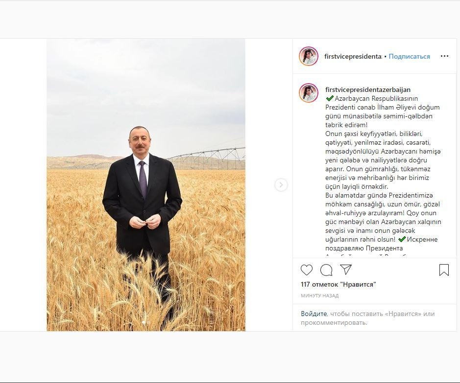 "Report" xəbər verir ki, bu sözlər Azərbaycanın Birinci vitse-prezidenti Mehriban Əliyevanın “İnstagram” səhifəsində yer alıb.