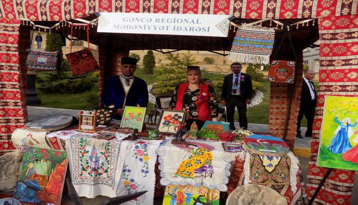 “Bölgələrdən Bölgələrə” Yaradıcılıq Festivalının sərgi hissəsində çadırlar qurularaq metalişləmənin fərqli texnika və üsullarda hazırlanan misgərlik nümunələri, məişət qabları, kəlağayılar, bədii tikmənin bir çox növünə aid zərif naxışlı tikmələri, çay daşları və ağac, muncuq, kağız və digər materiallardan hazırlanan bəzək əşyaları, həsirdən hörmə, toxuma əl işləri, ağacoyma və dulusçuluq kimi digər sənət növlərinə aid olan yaradıcılıq nümunələri sərgilənib.