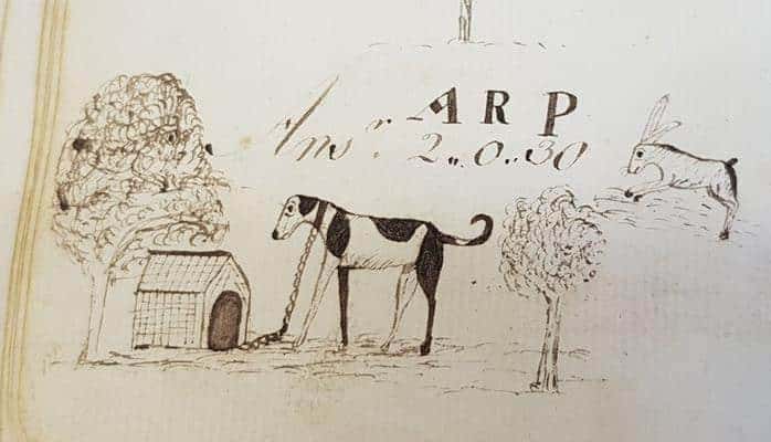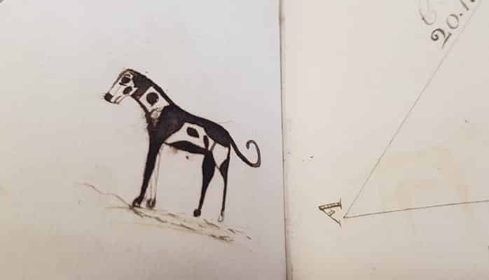 Şagirdin çəkdiklərini muzey əməkdaşları Kent qraflığının arxivlərinin birində tapıblar. Riyaziyyat dərslərində darıxan oğlan it, dovşan, gəmiciklər və ağacları çəkirmiş. Şəkillərin birində şalvarlı toyuq çəkilib.