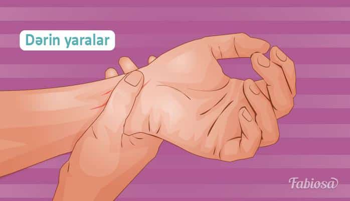 Yara geniş yayılıb, lakin unutmamalıyıq ki, hətta kiçik sıyrılma belə güclü qanaxmaya səbəb ola bilər. Bəzi yaralar sinirlərin zədələnməsi ilə müşayiət oluna bilər. Əgər siz qanaxmanı dayandıra bilmirsinizsə, infeksiyadan qorunmaq və lazım olarsa tikiş qoymaq üçün təcili tibbi yardım çağırın ki, həkim yaranı müalicə etsin.