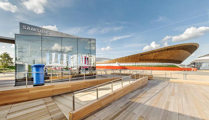 Cənubi Koreyanın texnologiya nəhəngi “Samsung” 2012 Olimpiya Oyunlarına sponsorluğun bir hissəsi olaraq Londonda müxtəlif məkanlarda öz markalarını tanıtmaq üçün fərqli kampaniyalar həyata keçirdi. “Samsung Studiyaları” adlı bu kampaniya iyul ayının ortalarından sentyabr ayının ortasına qədər davam etdi və həmin vaxt bazara yenicə daxil olan “Samsung Galaxy S3” və “Samsung Galaxy Note” ağıllı telefonlarının təqdimatına yönəldildi.