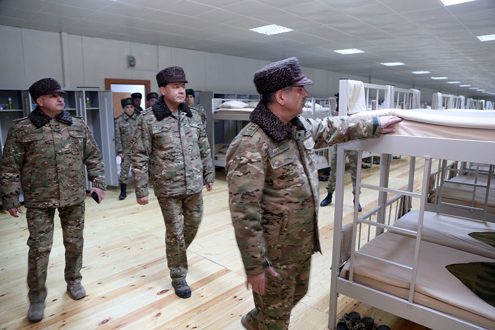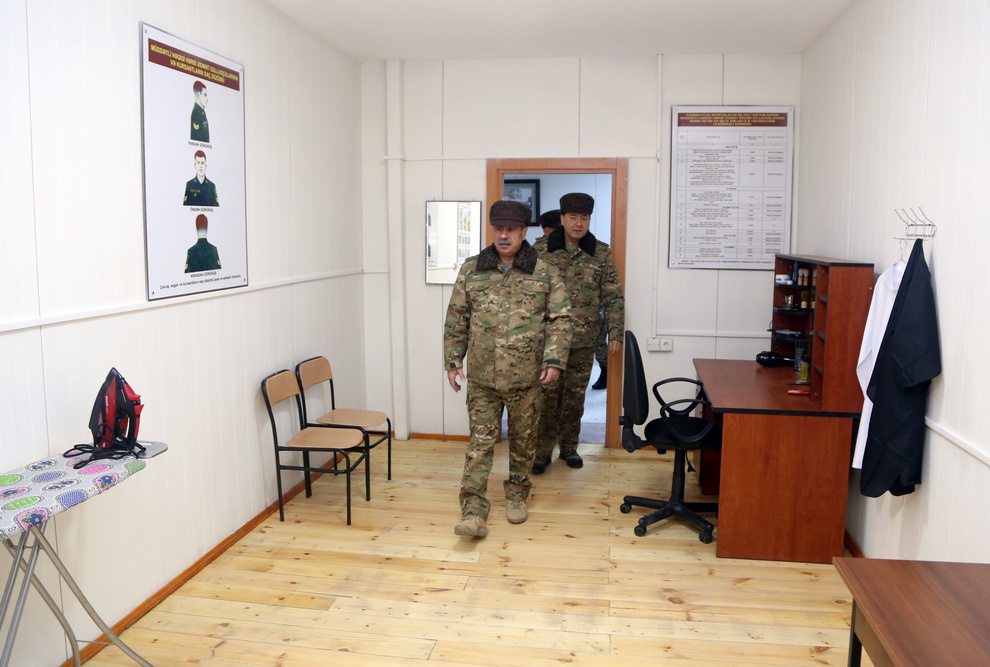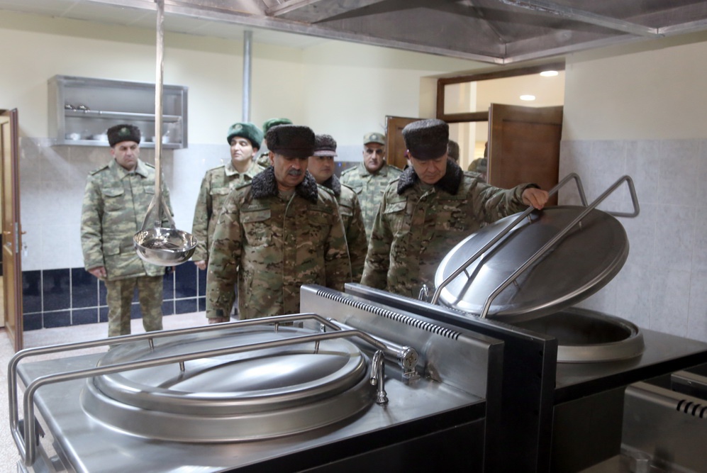 Müdafiə Nazirliyinin rəhbər heyəti yeni istifadəyə verilən hərbi hissədə olaraq əsgər yeməkxanasına, əsgər yataqxanasına, silah və ideoloji otaqlara, ərzaq, meyvə- tərəvəz anbarlarına baxış keçirib.