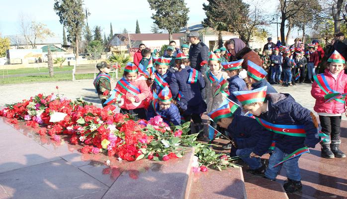 Dekabrın 12-də rayonun minlərlə sakini şəhərin mərkəzi meydanına - Heydər Əliyev Parkına gələrək ulu öndərin abidəsini ziyarət ediblər.