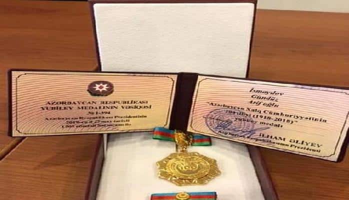 Məşhur paralimpiyaçımız Gündüz İsmayılov da "Azərbaycan Xalq Cümhuriyyətinin 100 illiyi" yubiley medalına layiq görülüb.