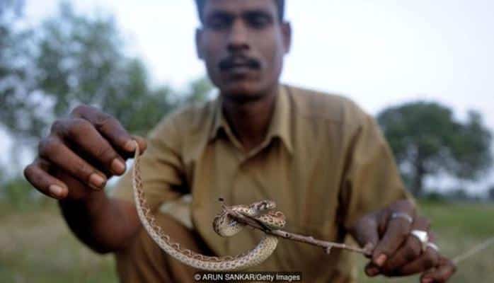 "Biz kənardakı ağacları budayırıq," Hindistanın ən zəhərli ilanlarından biri sayılan kobranı əli ilə sakitcə tutan Rajendran deyir. Onun əynində boş pambıq köynək və rəngi solmuş "lungi" (aşırma ətək və ya sarong) var.