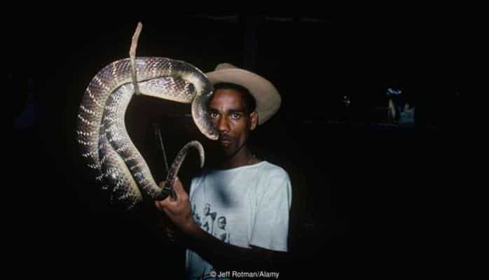 Bir neçə il qabaq quru və tikanlı kollarla dolu Cənubi Hindistana səyahət edərkən yol qırağında bir nəfər ilanının başını yuxarıdan sallayaraq nümayiş etdirirdi.
