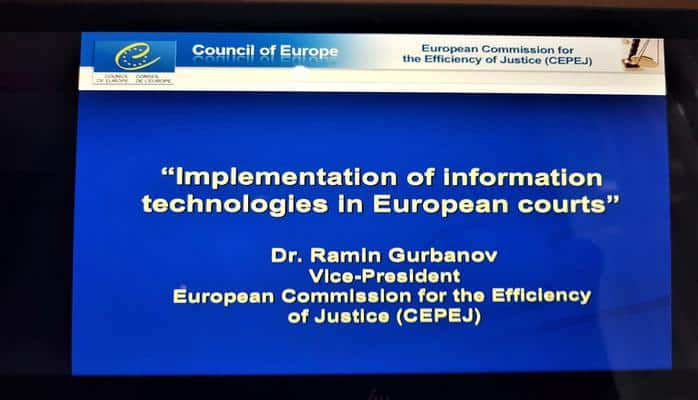 Avropa Şurasını təmsil edən CEPEJ-in vitse-prezidenti Ramin Qurbanov “Məhkəmə hakimiyyəti və onun cəmiyyətə münasibəti” adlı III bölmədə əsas məruzəçilərdən biri olaraq CEPEJ-in fəaliyyətindən, onun Avropada ədalət mühakiməsinin səmərəliliyi və keyfiyyətinin artırılmasında rolundan danışıb, habelə Avropa məhkəmələrində informasiya texnologiyalarının tətbiqi vəziyyəti, o cümlədən məhkəmə fəaliyyətində “Proqnozlaşdırılan ədliyyə” və “Süni intellekt”in məhkəmələrə müraciət etmək imkanlarının asanlaşdırılması, şəffaflığın təmin olunması, səmərəliliyin artırılmasına müsbət təsiri barədə məlumat verib.