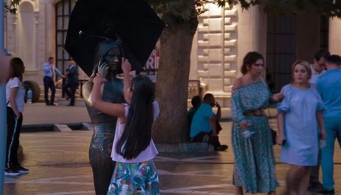 Nizami küçəsinin rəmzlərindən sayılan “Çətirli qız” heykəli turistlərə görə şəkil çəkdirmək üçün maraqlı abidə, azərbaycanlılar üçün isə dayanacaq və görüş yeri sayılır.