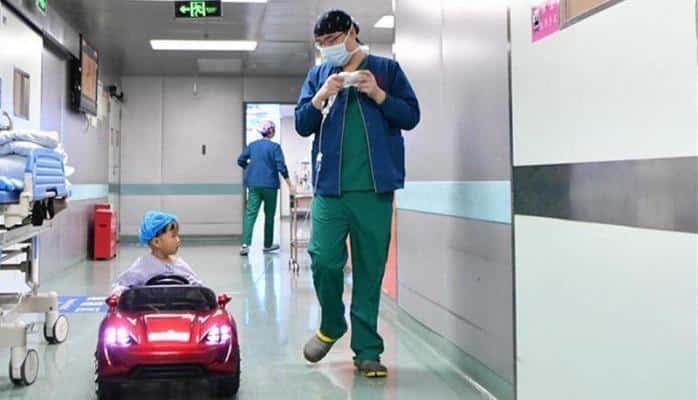 Çinin Hunan əyalətində uşaq xəstəxanasında cərrahiyyə əməliyyatından əvvəl qorxu hissini uzaqlaşdırmaq üçün maraqlı üsula əl atıblar.