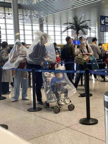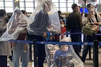 Çində təyyarədən istifadə edən sərnişinlər koronavirusa yoluxmamaq üçün qeyr-adi üsullara əl atırlar.