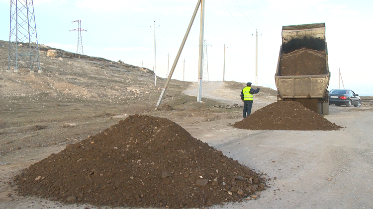 Layihəyə uyğun olaraq mövcud asfalt-beton örtüyü sökülərək kənara daşınıb, yolun deformasiyaya uğramış hisələri qazılaraq çıxarılıb, təqribən 36 min kub.m həcmdə karxana qruntu ilə əks-dolğu işləri görülüb.