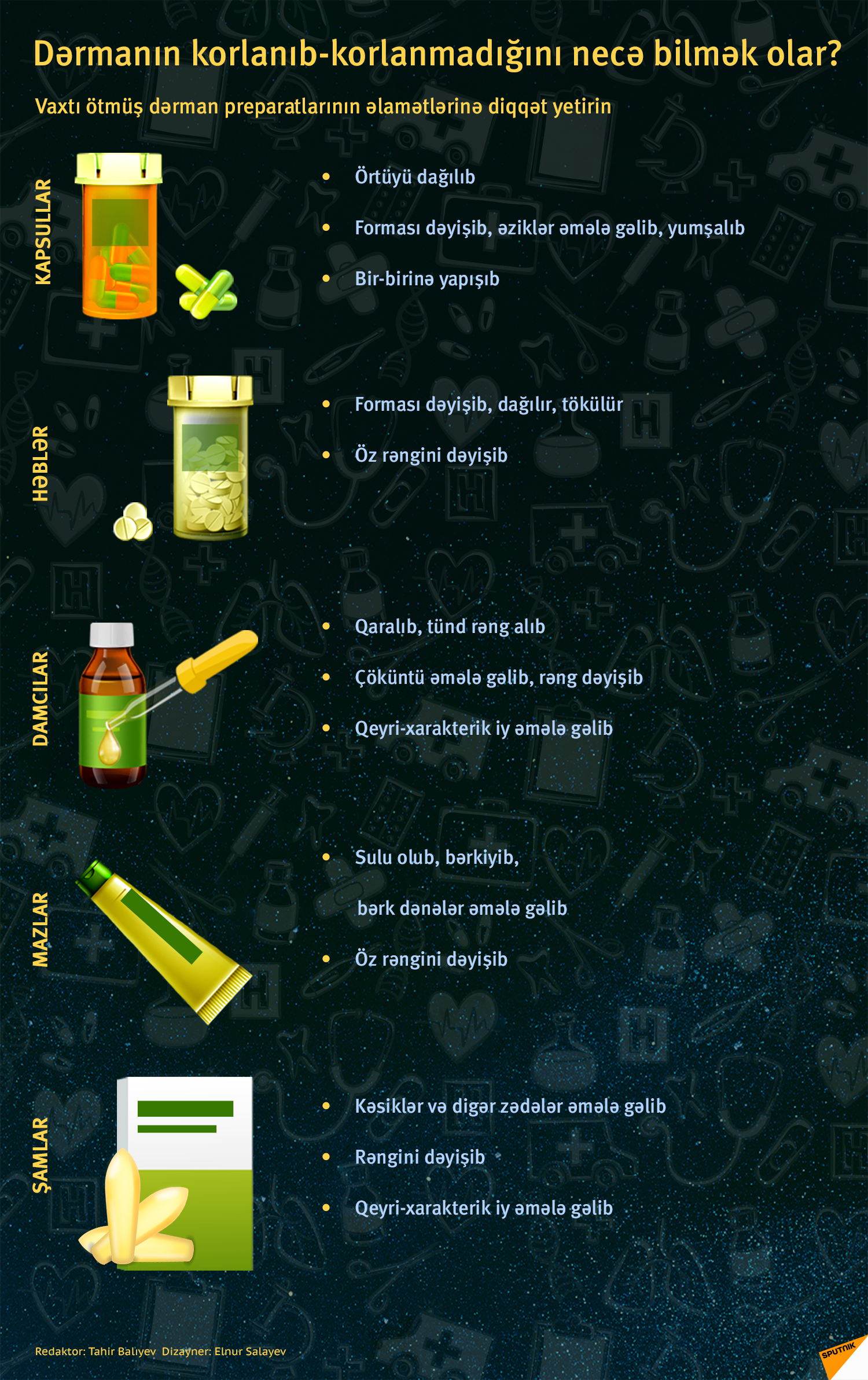 Sputnik Azərbaycan öz infoqrafikasında xarab olmuş dərmanları tanımağın yollarını göstərib