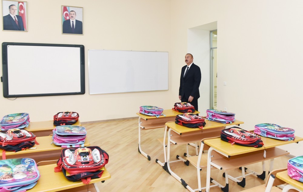 Dövlət başçısı 8 nömrəli tam orta məktəbdə əsaslı təmirdən sonra yaradılan şəraitlə tanış olub