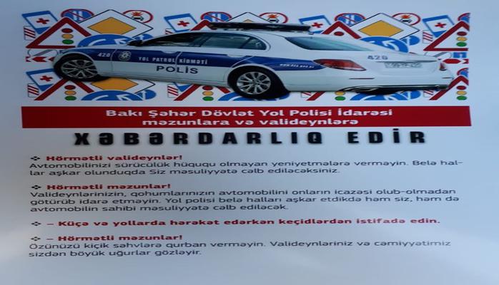 "Sürücü və piyadalara tövsiyə olunur ki, yol hərəkəti qaydalarına riayət etsinlər və "Son zəng" tədbirlərinin təhlükəsiz şəkildə başa çatmasına töhfə versinlər.