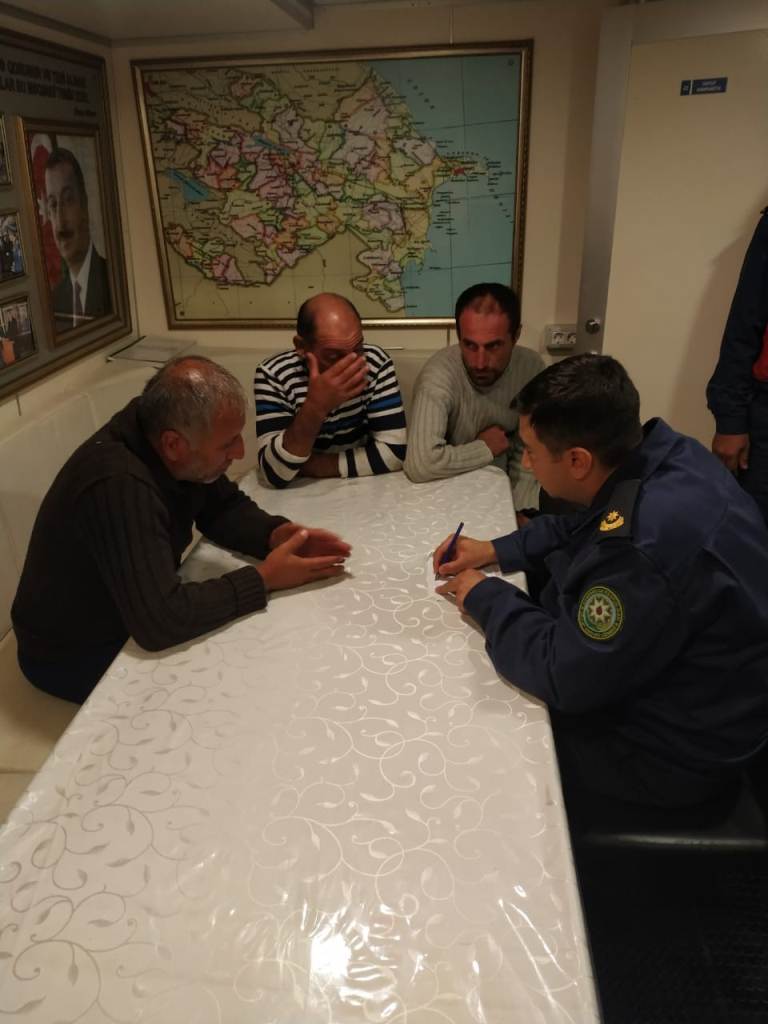 Xilas edilən balıqçılar ilkin tibbi yardım göstərilərək isti geyim və qida ilə təmin olunub, saat 07:10 radələrində Sahil Mühafizəsinin bazasına gətiriliblər. Xilas edilən şəxslərin Neftçala rayonu sakinləri 1980-ci il təvəllüdlü Babayev Valeh Vidadi oğlu, 1975-ci il təvəllüdlü Cəfərov Elbrus Yəhya oğlu, 1971-ci il təvəllüdlü Əhmədov Aqil Şamil oğlu olmaları müəyyən edilib.