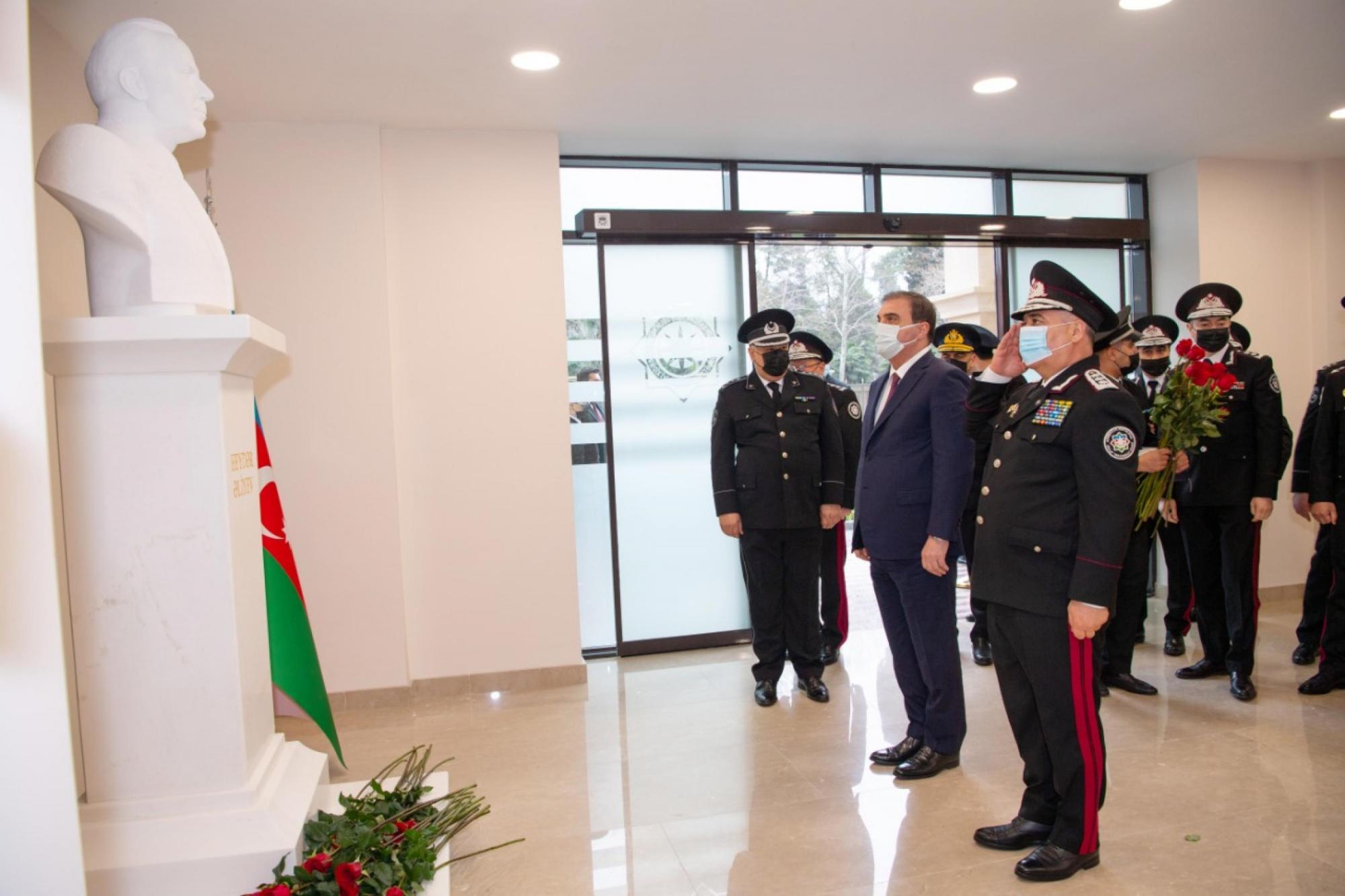 Sonra Gəncə Şİ-nin müasir üslubda və tələblərə uyğun inşa edilən yeni inzibati və yaşayış binalarından, eləcə də təsərrüfat təyinatlı tikililərdən ibarət kompleksin açılış mərasimi keçirilib. Rəmzi qırmızı lent kəsildikdən sonra tədbir iştirakçıları inzibati binanın foyesində müstəqil Azərbaycanın qurucusu və memarı ulu öndər Heydər Əliyevin unudulmaz xatirəsinə ehtiramlarını bildirərək, abidəsi önünə gül dəstələri qoyublar. Həmçinin Xidmət rəisi və digər iştirakçılar ümummilli liderin və Azərbaycan Respublikasının Prezidenti, Müzəffər Ali Baş Komandan İlham Əliyevin dövlətçilik fəaliyyətini, Azərbaycan təhlükəsizlik orqanlarının tarixini əks etdirən fotostendlər, inzibati binanın otaqları və əməliyyatçıların iş şəraiti ilə tanış olublar.