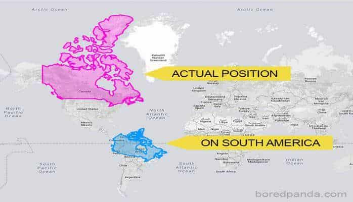 Bəzi ölkələrin dünya xəritəsində digərlərindən böyük və kiçik olmağının səbəbi düz xəritəyə 3D planet yerləşdirməyin müasir xəritəçilikdə yaşanan çətinliklərdir.