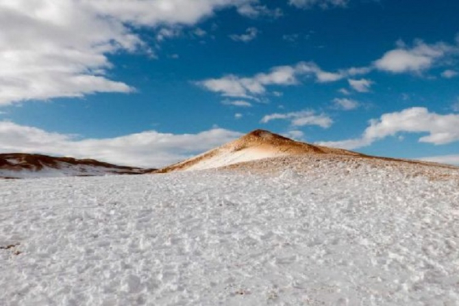 Əlcəzairin Ayn-Sefa şəhərinin sakinləri qeyri-adi təbiət hadisəsinin şahidi olublar – dünyanın ən böyük səhrası olan Böyük Səhraya ikinci il ard-arda qar yağıb.