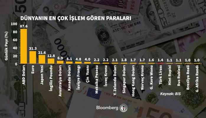 Türk lirəsi isə ən çox ticarət olunan pullar arasında 16-cı sıradadır.