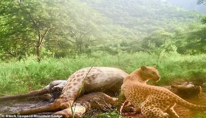 Qeyd edilir ki, bəbir ölmüş zürafənin ətini yeyərkən kameralara tuş gəlib. Bu an ilk dəfə kamera vasitəsilə çəkilib.