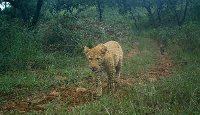 Dünyada ən nadir sayılan çəhrayı bəbir müşahidə kamerasına düşüb.