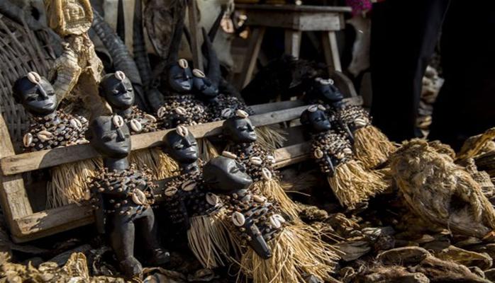 Akodessevada satılan mallar Vudu dininə görə hər şeyin təməlində olan “ruhları” köməkçi olmağa razı salmaq üçün inananlara satılır.