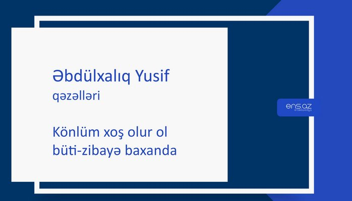 Əbdülxalıq Yusif - Könlüm xoş olur ol büti-zibayə baxanda
