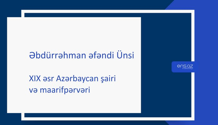Əbdürrəhman Əfəndi Ünsizadə (Ünsü) – XIX əsr Azərbaycan şairi və maarifpərvəri