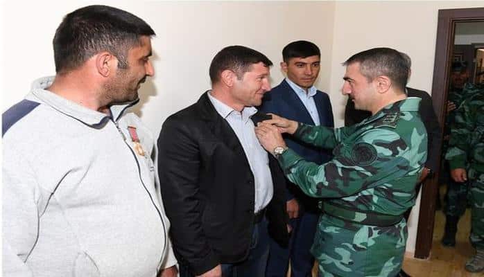 Sərhəd döyüş məntəqələrində tikinti-inşaat işlərinin görülməsində fərqləndiklərinə görə Dövlət Sərhəd Xidmətinin rəisi tərəfindən “Hərbi əməkdaşlıq sahəsində xidmətlərə görə” medalı ilə təltif edilmiş yerli sakinlər Anar Dünyamalıyevə, Səfərəli Abışova, Hüseyn Şahverdiyevə və Zaur Yusifova medallar təqdim olunub.