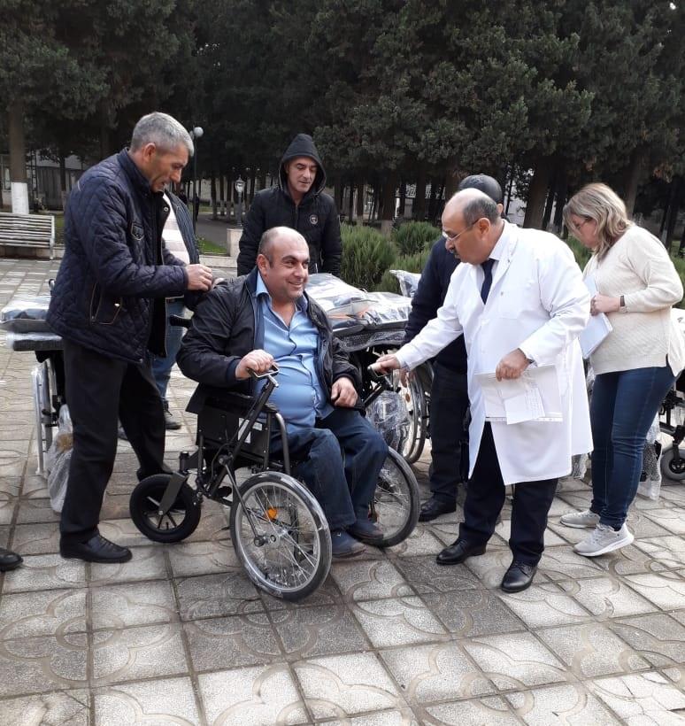 Bir qrup əlilliyi olan şəxsə əlil arabaları yaşadıqlara rayonlara, bir qisminə evlərinə aparılaraq verilib