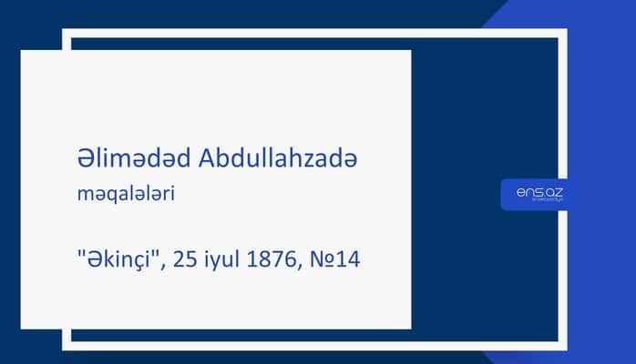 Əlimədəd Abdullahzadə - "Əkinçi", 27 may 1876, №10/Məktubat