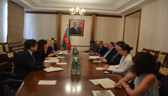 Xarici İşlər naziri Elmar Məmmədyarov Avropa Şurasının İnsan Hüquqları üzrə Komissarı Dunya Miyatoviçin başçılıq etdiyi nümayəndə heyətini qəbul edib.