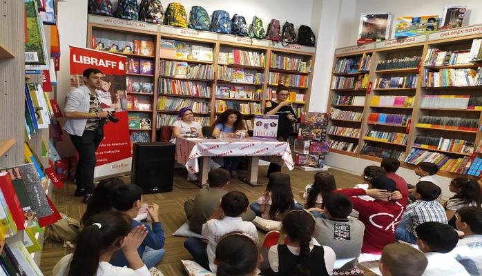Elnarə balaca dinləyicilərinə “Sehrli papaq” nağılını oxuyub. Nağılı işarə dilinə təlimçi və işarə dili mütəxəssisi Könül Quliyeva tərcümə edib. Təşkilatçılar