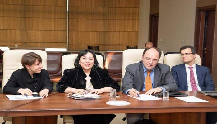 Əmək və Əhalinin Sosial Müdafiə Nazirliyində Beynəlxalq Maliyyə Korporasiyasının (BMK) ölkəmizdə səfərdə olan missiyası (layihə üzrə menecer Lili Begiaşvilli və ekspertlər Yan Travers, Florentin Blan, Qedryus Kadziauskas, layihə üzrə məsləhətçi Sabit Abdullayev) ilə görüş olub.