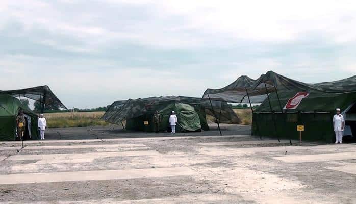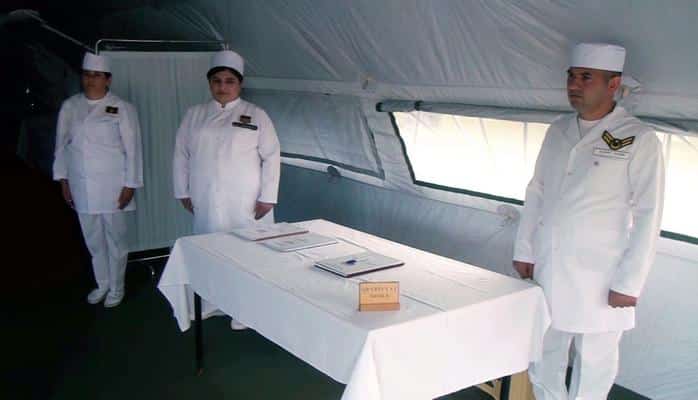 Fəaliyyət göstərən səhra tibb məntəqəsində təcili və davamlı tibbi müdaxilə, döyüş travmasının qiymətləndirilməsi, təxliyə və digər tibbi tədbirlər praktiki icra olunur.