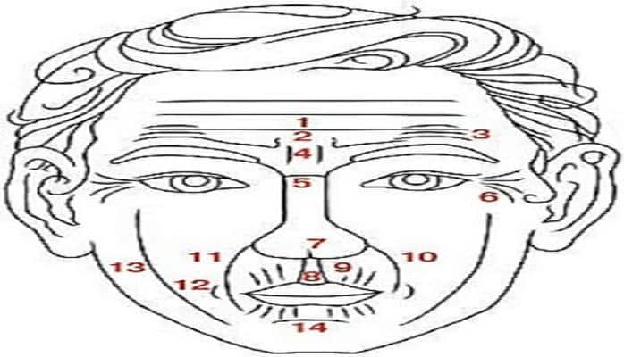 Çənə nahiyəsindəki qırış qəzəb və gələcək qorxusunu ifadə edir. Bu qırış babasil, sidik kisəsi və bağırsaq xəstəliyinə işarədir.