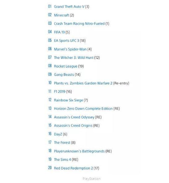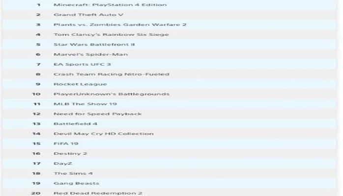 "PlayStation" rəsmi mağazası 2019-cu ilin nəticələrinə görə 20 ən çox satılan oyunlarının adlarını açıqlayıb. Bura futbol simulyatorlarından tutmuş döyüş mövzularında olan müxtəlif oyunlar daxildir.