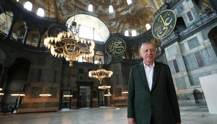 Türkiyə Prezidenti Rəcəb Tayyip Ərdoğan 86 il sonra qapıları ibadətə açılacaq Ayasofyada aparılan işlərlə tanış olub.