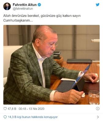 Axar.az xəbər verir ki, F.Altun Ərdoğanın kompüter arxasında çəkilən fotosunu paylaşaraq “Allah ömrümüzə bərəkət, gücümüzə güc qatsın, cənab Prezidentim...”, şərhini yazıb.
