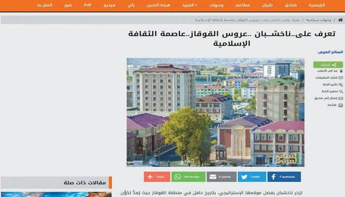 Ərəbistanın Azərbaycana turlar təşkil edən turizm firmalarının “Twitter” sosial şəbəkə hesablarında isə muxtar respublikanın inkişafını və turizm potensialını təbliğ edən videomateriallar və fotoşəkillər paylaşılıb.